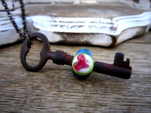 SW Studios - Glass Lampwork Bead Skeleton Key Necklace