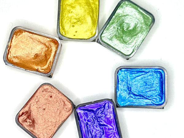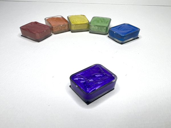 All of our watercolors are handmade and produced in our artisan studio using our proprietary recipes. All paints are vegan and created from pigments and a binder made of acacia gum, glycerine, distilled water, and essential oils. For a further list of ingredients, please contact us. Small bumps, bubbles and cracks are part of the natural "maker's fingerprint" and do not affect the useability. However, we strive to eliminate as many of these as possible.
